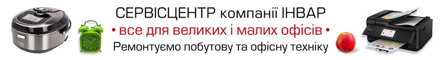 Роботи по обслуговуванню та відновленню офісної оргтехніки здійснюються кваліфікованими фахівцями які пройшли навчання і сертифікацію. Заявки на виконання робіт по сервісному обслуговуванню побутової і офісної комп'ютерної техніки відправляйте на e-mail: invarsale@ukr.net |